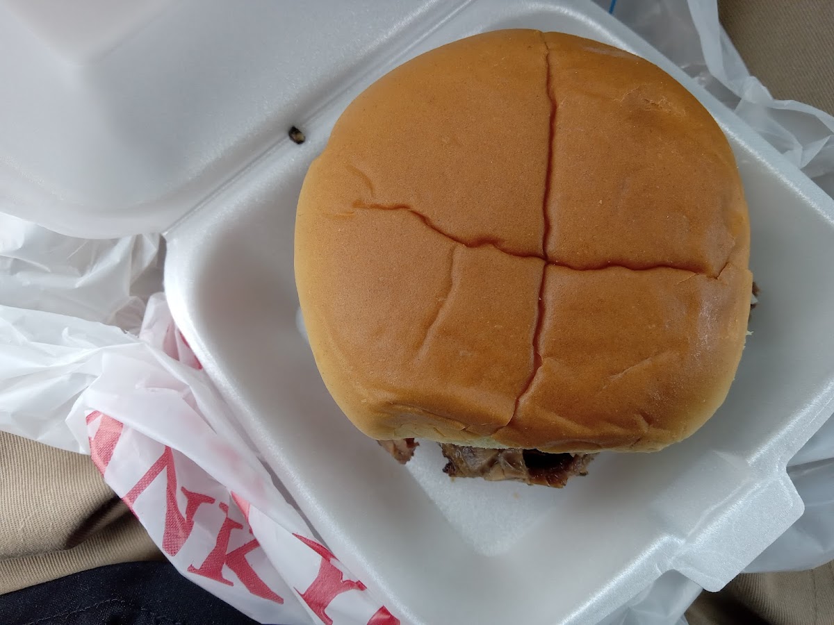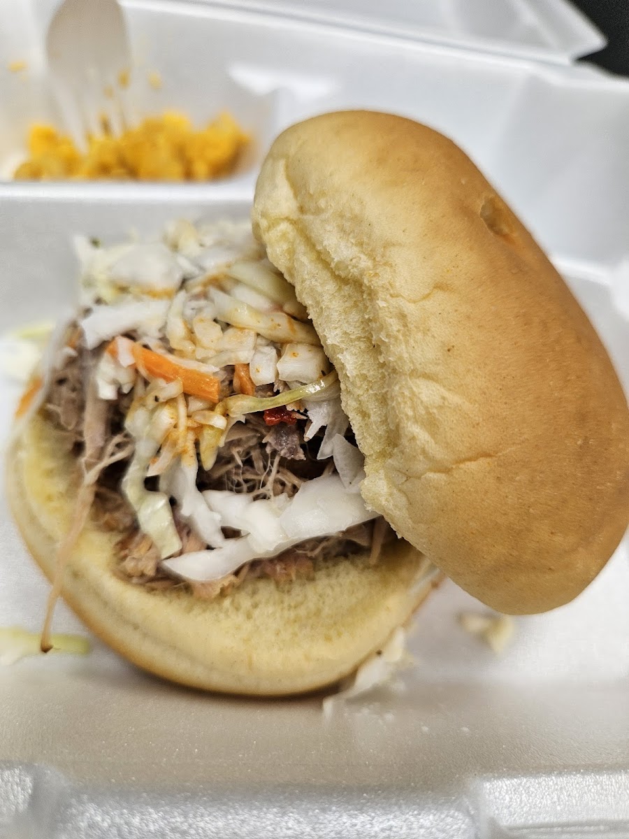 The BBQ was outstanding and the staff friendly and helpful. Two in our party; one had the pulled pork sandwich with Cole Slaw on it with a pasta salad. The other was the boneless rib sandwich with BBQ sauce on top with store made 3 bean salad. Highly recommended, if you happen to be in the area